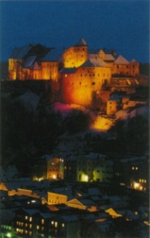 Burghausen bei Tag und bei Nacht.