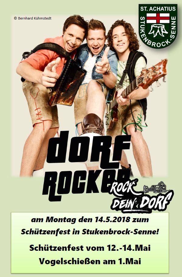 Der Termin steht jetzt fest. Die Dorfrocker werden zu unserem Schützenfest am Montag den 14.Mai in Stukenbrock-Senne spielen!