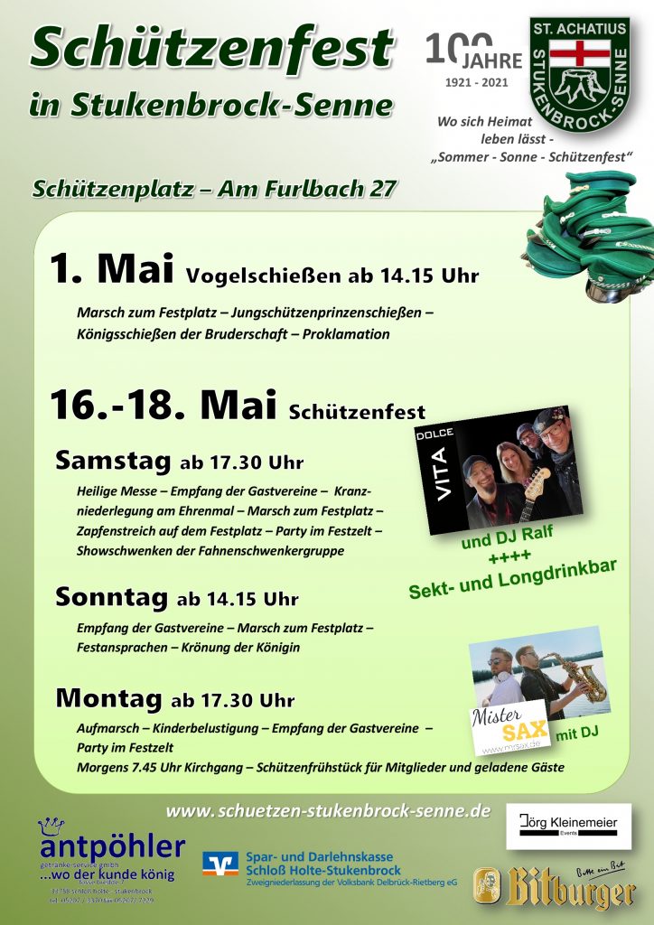 - 17.30 Uhr Antreten am Schützenplatz – Empfang des Hofstaates und des neuen Bierkönigspaares auf dem Festplatz – anschließend Kinderbelustigung